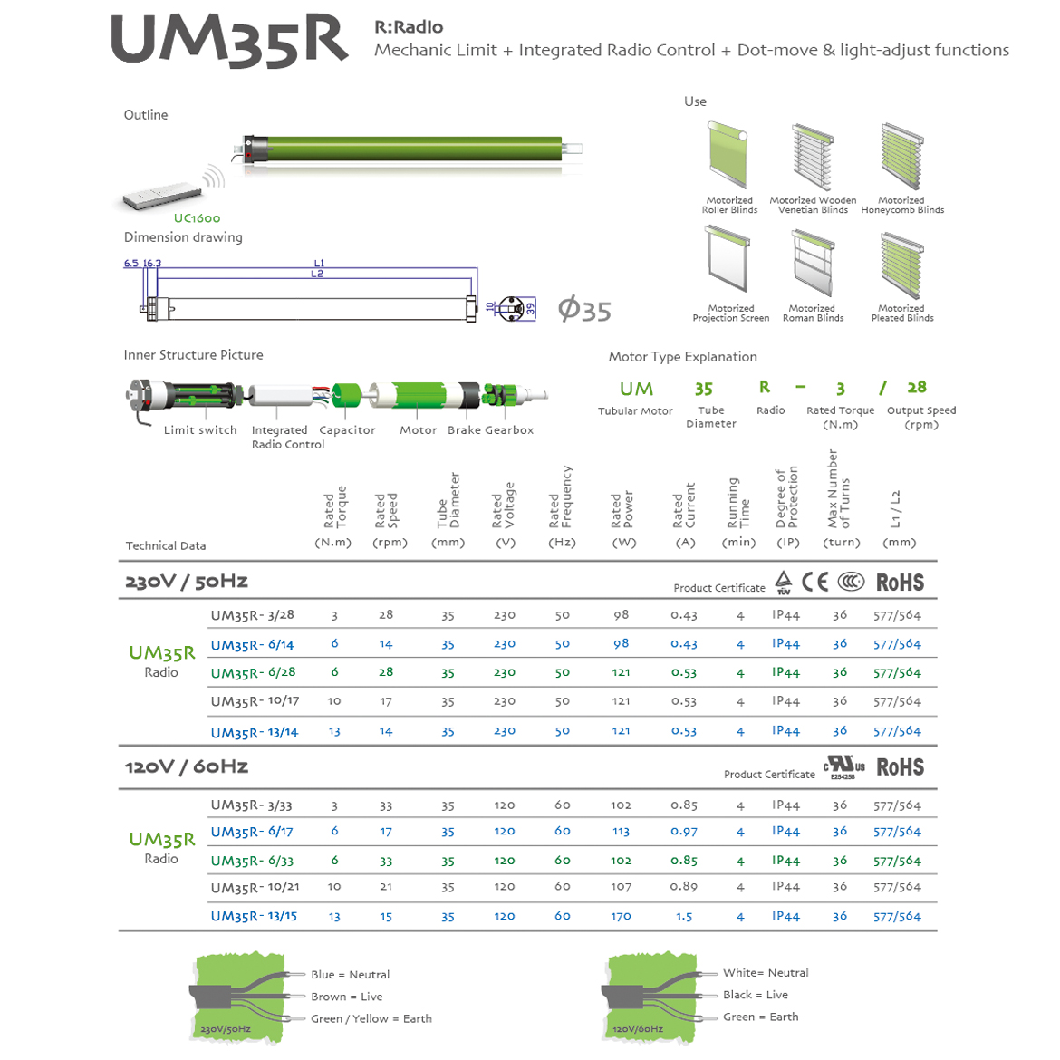 R:Radio/ Mechanic Limit+Integrated radio control+jogging & tilt