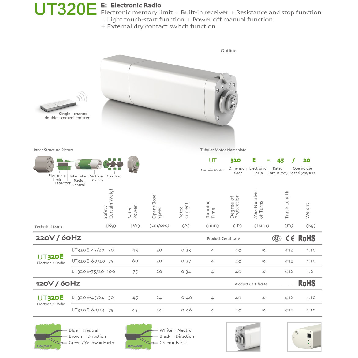 Memorized Limit+Integrated Radio Control+Obstruction Detection+Light touch-start+Manual Override+The third limit position+Compatible with dry contact switch function.