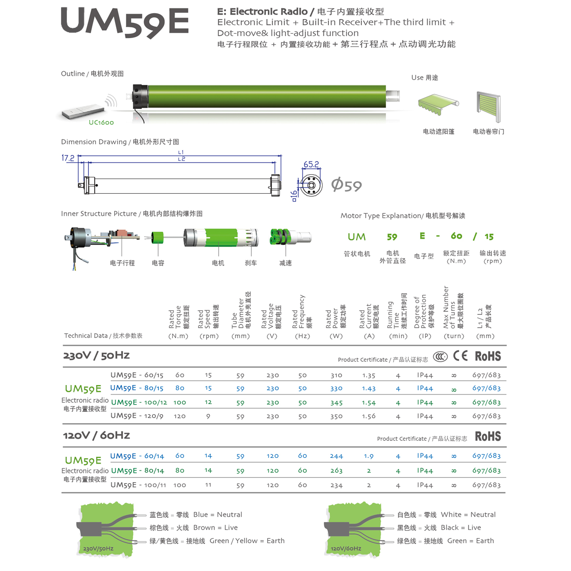 E:Electronic Radio/電子內置接收型 Electronic Limit+Integrated radio control+jogging & tilt+The third limit/電子行程限位+內置接收器+點動調光功能+第三行程點